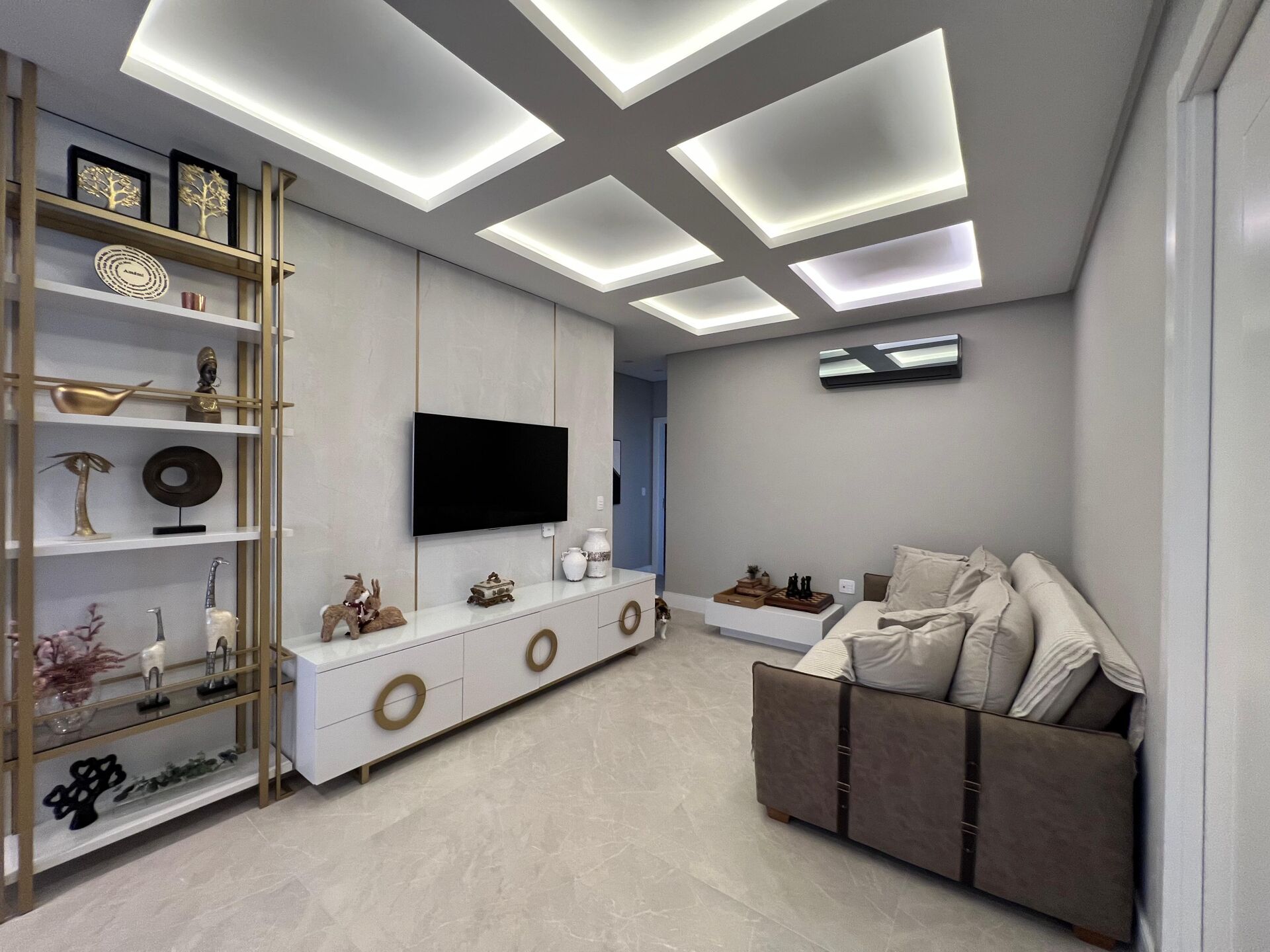 A área de lazer conta com piscina, salão de festas, sala de jogos e espaço gourmet.