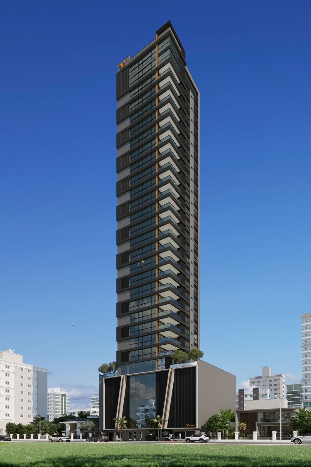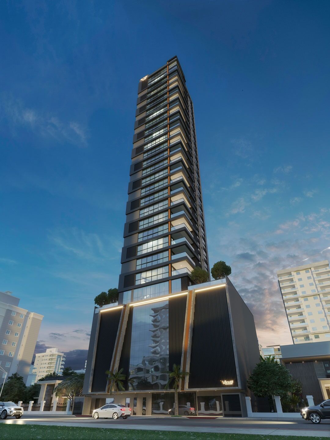 Com 1 apartamento por andar, 2 elevadores e 1 planta bem distribuída com 153 m² privativos, 4 suítes amplas, lavabo, cozinha, área de serviço, living integrado com sala de estar e sala de jantar, sacada aberta com churrasqueira à carvão e 3 vagas de garagem.