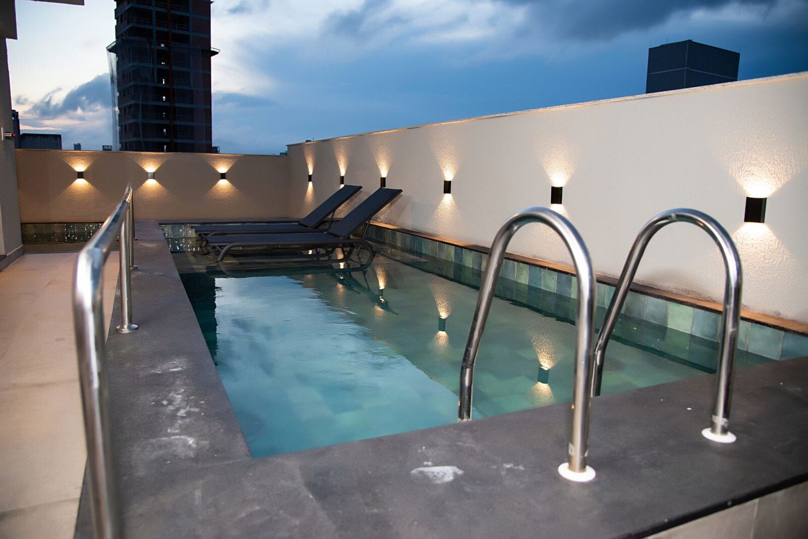 Área de lazer com piscinas adulto e infantil, academia, sauna, sala de poker, sala de jogos, salão de festas, brinquedoteca, playground.