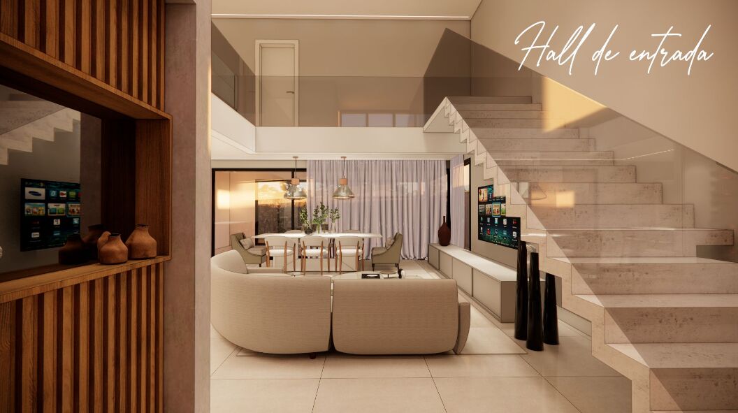 Um projeto que une arquitetura contemporânea, conforto e sofisticação, pensado para quem busca exclusividade e funcionalidade. Com 311 m² de área privativa em 2 pavimentos, 4 suítes, sendo 1 suíte master com closet, com espaço para toda a família, home office ou quarto de hóspedes, sala com pé-direito duplo, trazendo imponência e iluminação natural, mezanino.